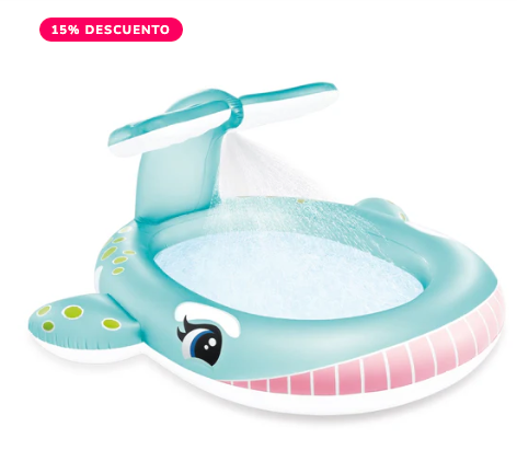 Los días de verano en casa serán aún más divertidos con la piscina inflable con spray para niños. Monta la piscina inflable en la terraza o el jardín, conecta la manguera y deja que tus niños disfruten jugando y bañándose con la piscina inflable con aspersor Intex Ballena.